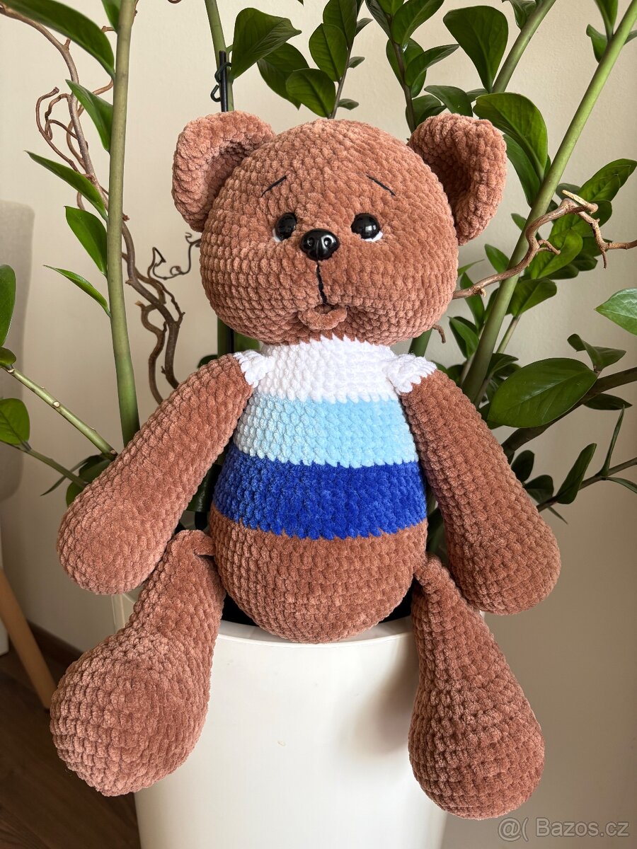 Nový ručně háčkovaný Medvídek, vel. cca 45cm, z plyšové příze Himalay Dolphin Baby, příjemná na dotek, bezpečnostní oči i čumáček, plněno dutým kuličkovým vláknem. Každá postavička je originál. Mazlíček do postýlek, kamarád na cesty, dekorace dětského pokojíčku. Zasílám přes Zásilkovnu..