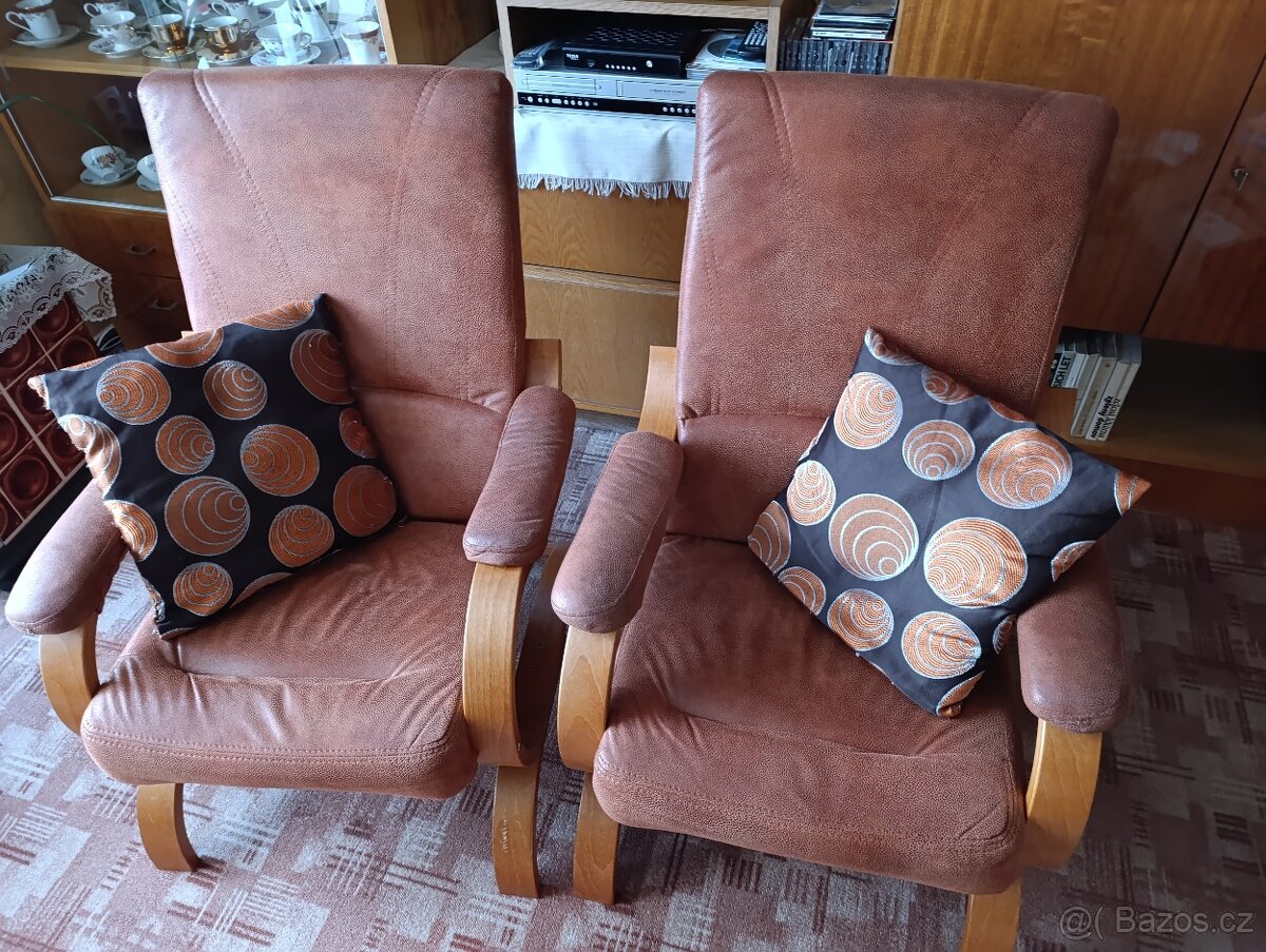 Nabízím 2 křesla s textilním potahem. Barva je hnědo-oranžová. Pouze osobní odběr.