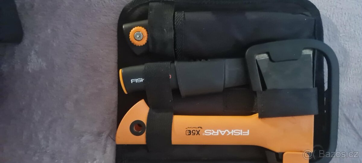 Téměř nepoužitá sada nářadí Fiskars v pouzdře. Sekyrka, pilka a nůž. Ideálně osobní předání v Ostravě. Při rychlém jednání možná sleva