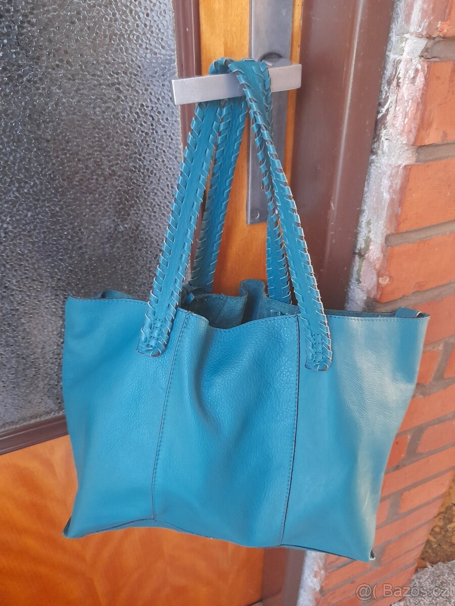 Prodám kabelku tyrkysové barvy z pravé kůže, málo nošená.