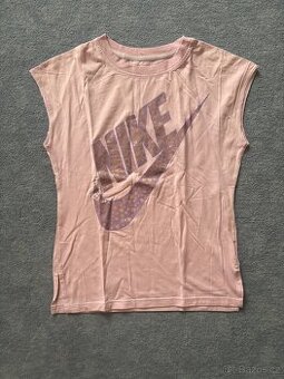 Dámské tílko Nike. Šlo původně o tričko s krátkým rukávem, ale rukávy byly ustřiženy a teď je z toho tílko. I tak vypadá velmi dobře. Velikost S.