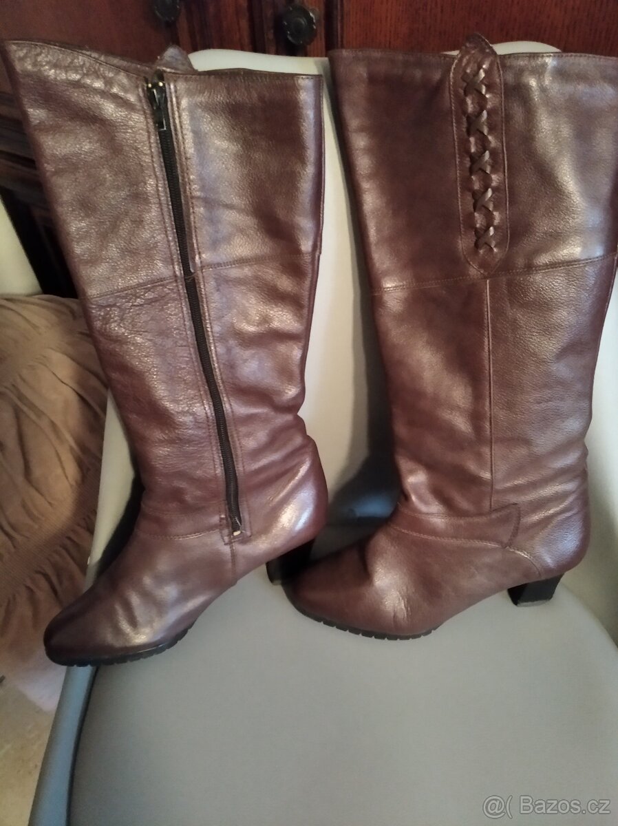 Cena: Nabídněte. Prodam krasne hnede kozene kozacky z mekke kuze, velikost 5 az 5,5. Viz tri fotky. Cenu nabidnete.