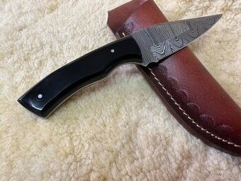 Lovecký nůž, damašková čepel, buvolí roh