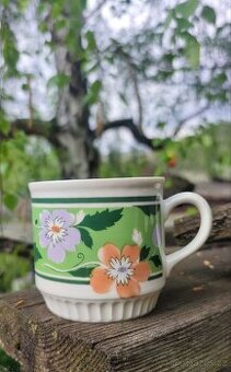 Starý hrneček, pohled na něj hladí duši jako pohlazení sluncem po dešti. Vzácný kousek historie, starý retro hrneček, který s sebou nese šepot dávných časů z dob Československa. Nechť tento starý retro hrneček s barevným motivem květů z Československa přinese do vašeho domova kousek romantiky a vzpomínek. #retro #retrohrnek #retrokubek #nostalgia #starozitnosti #vintage #vintagehrnek