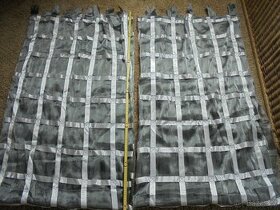 rozměr závěsu 240x140 /1 ks,zavěsit za oka na tyč= 400 Kč za oba polštáře 65x45 cm,zapínání zip=200 za 6 ks. Nepoužívané.Materiál leskle kovový,asi satén.
