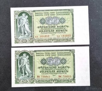 50 korun 1953 tisk STC Praha + Goznak Moskva vzacna perforace 3 m.d. v obloucku v TOP stavu UNC !!