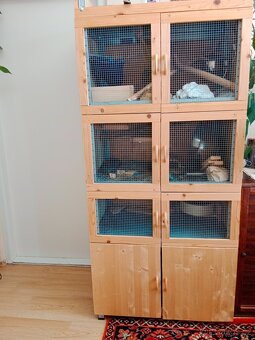 Prodám klec pro osmáky včetně krmiva a kolotočů - 3 patra + úložný prostor pro krmivo. Patra mají průchozí otvory. Klec je vyčištěna. Končím s chovem.