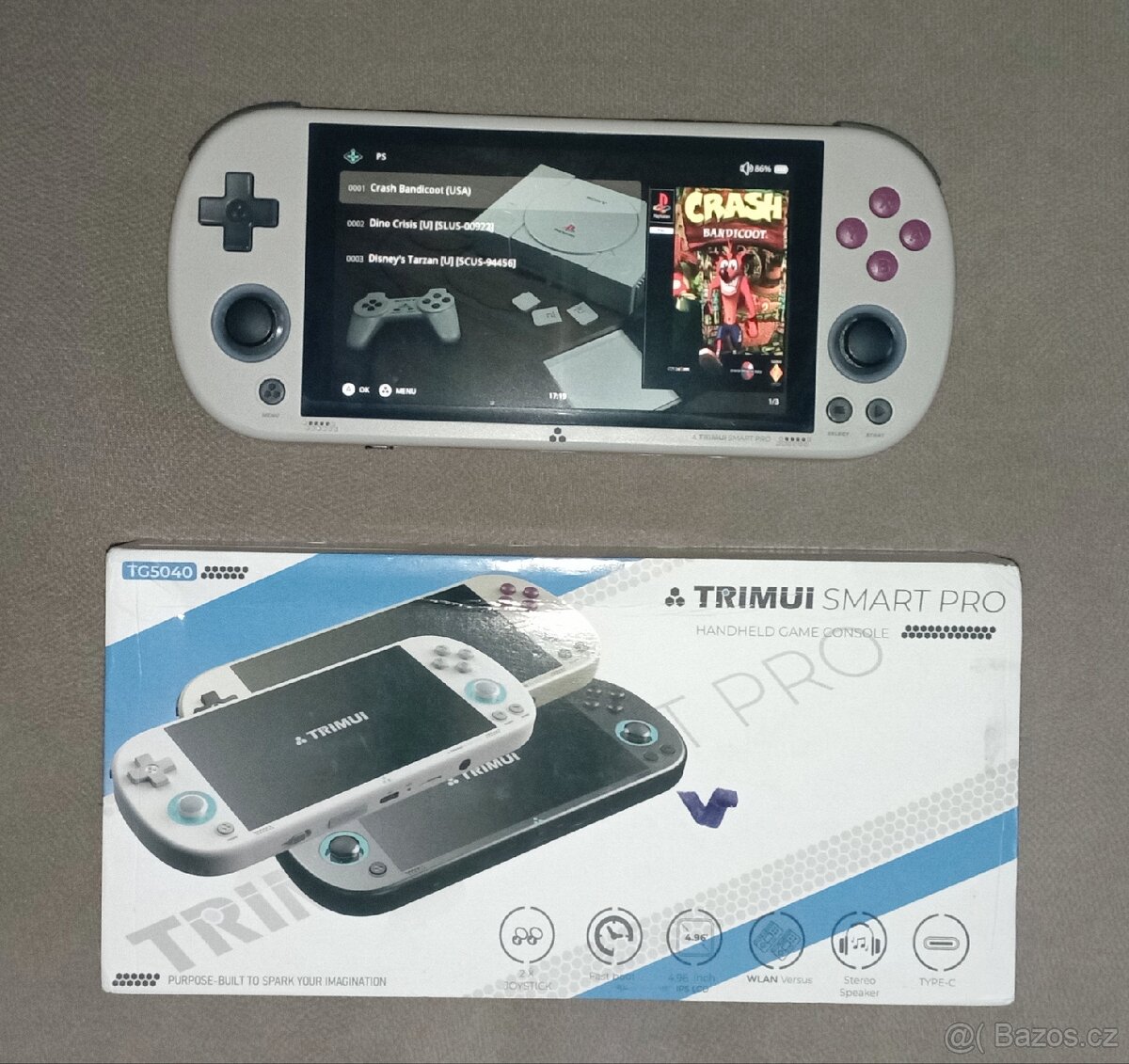 Prodám tento retro handheld, který nemá problém s emulací všeho po PS1 (NES, SNES, Gameboy, Sega, arkády...), ale také spoustu her pro PSP a Dreamcast. Obsahuje 128Gb kartu, kde je pár her a má nahraný Crossmix OS a obsahuje software, který prostřednictvím aplikace umožňuje stahovat hry přes wifi přímo v konzoli. Konzole je velmi dobrém stavu, zřídka použitá s originalním balením. Má stále původní ochrannou fólii. Idealní je osobní převzetí KV, Cheb, Sokolov a okolí. Mohu také zaslat Zásilkovnou nebo Balíkovnou. Prosím nejprve kontaktovat na email.