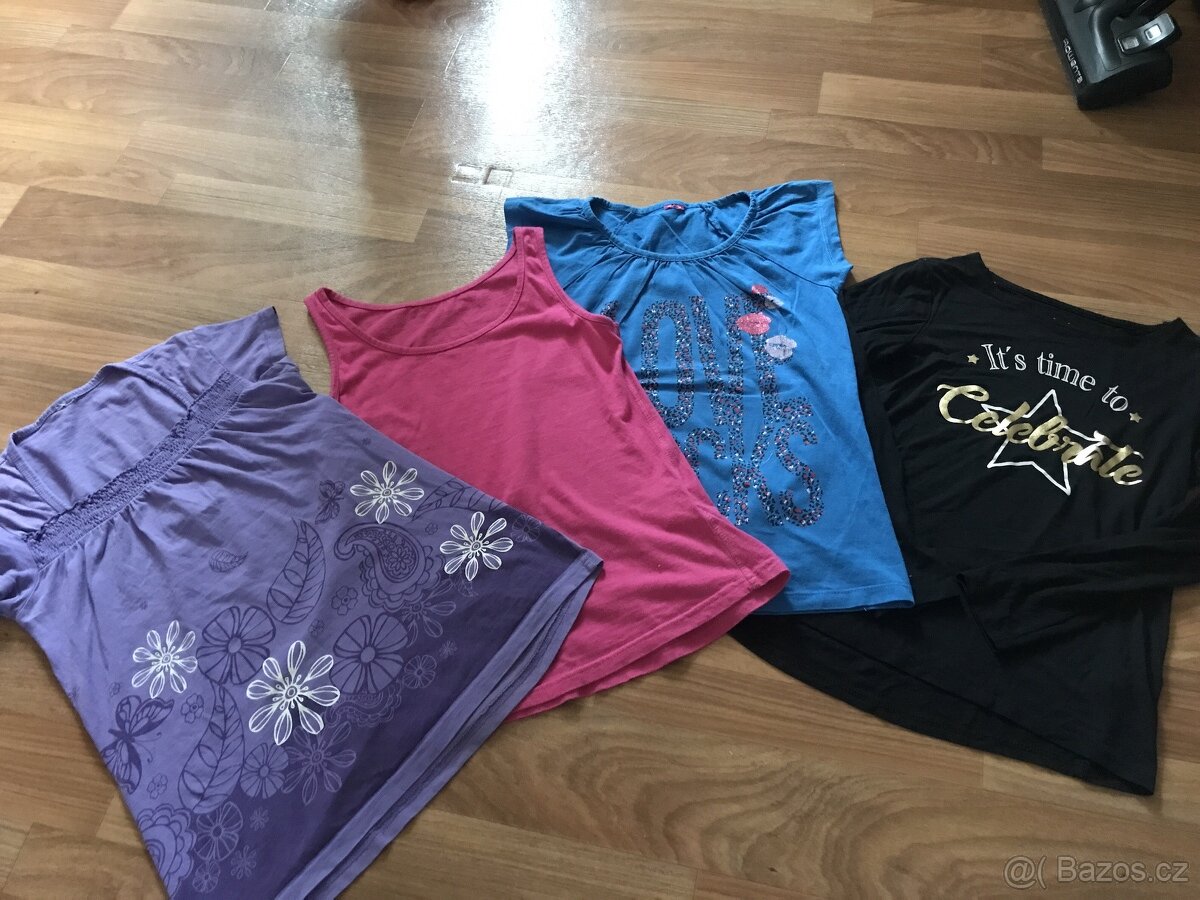 Fialové triko : Celková délka : 60 cm Šířka v podpaží : 36 cm Tílko : Délka : 56 cm Šířka podpaží : 36 cm Modré triko : Celková délka : 54 cm Šířka v podpaží : 36 cm Černé triko : Celková délka : 53 cm Šířka v podpaží : 37 cm Délka rukávů : 52 cm Podívejte se i na mé další nabídky, ušetříte na poštovném. Lze poslat i přes zásilkovnu.