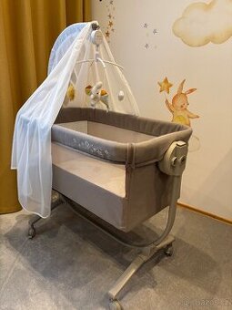 Prodám krásnou postýlku CULLAMI, od italské značky Cam pro miminko v původním obalu. Barva béžová. Postýlka je jako nová, po jednom miminku, má mnoho funkcí jako je možnost houpání, polohování, odepínatelná zipem jedna půlstrana postýlky pro snažší obsluhu miminka především v noci u postele, připínací popruhy k upevnění postýlky k posteli, kolečka pro snadnou manipulaci, všechy opatřeny brzdičkami. K postýlkce zdarma přidám bílé nebesa a závěsnou točící hračku s melodií od značky Little Dutch.
