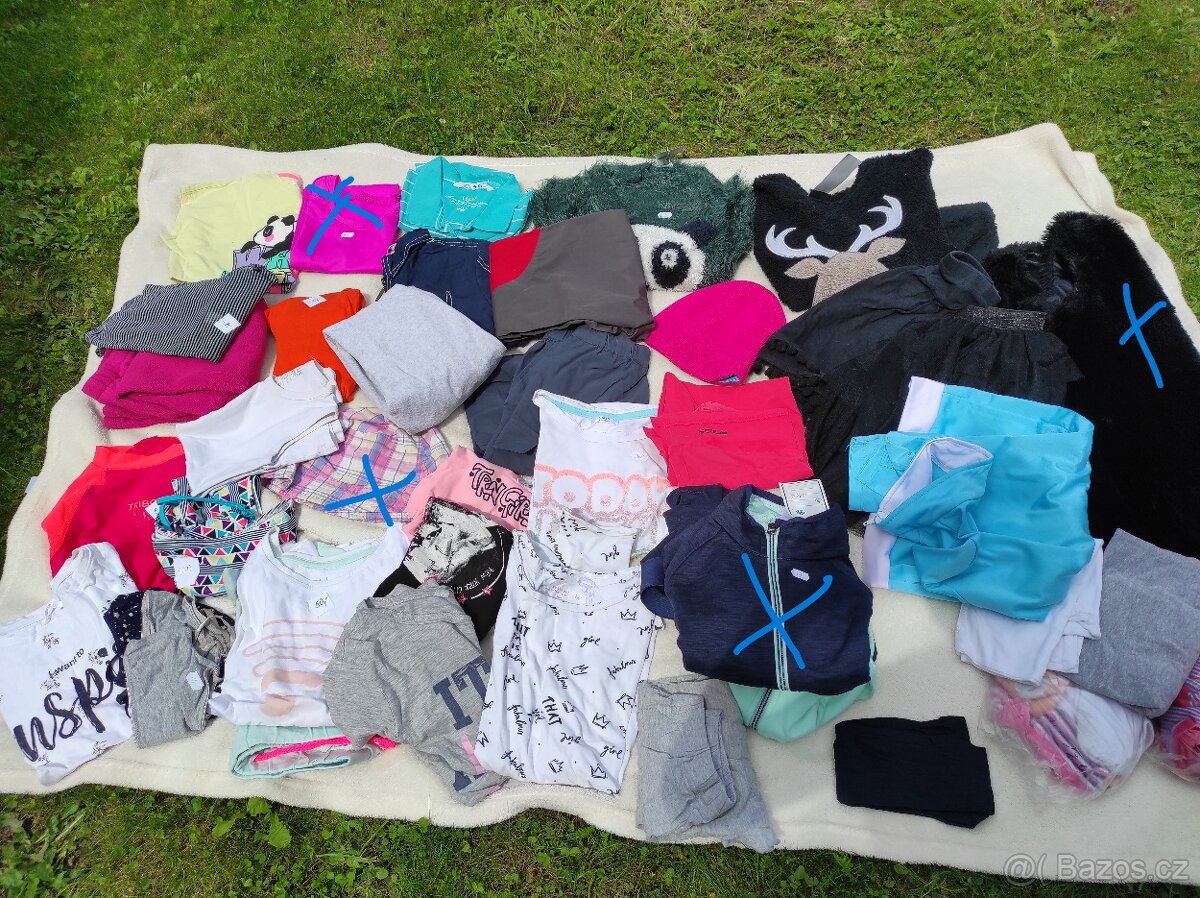 Cena: V textu. Prodám dívčí mix věcí do školy či volný čas. Velikosti 134/140 - 146/152. Košilka 2x (cena 20Kč/ks)+ vršek 2x (cena 15Kč/ks , vel. 148/158 Trička s krátkým rukávem: 4ks vel. 134/140 - žluté Panda, proužkované modré s límečkem, crop top - bílé 2x (cena 30Kč/ks) 1ks pyžamo = krátký rukáv + kraťasy 50Kč 3ks vel. 146/152 - růžové, černé, šedé (na doma) 50Kč komplet 1ks lehká tepláková bundička sv. modrá 136 za 70Kč Tričko dl. rukáv Reserved - 1 ks vel. 164, (spíše menší) 30Kč 1ks kraťasy bavlněné vel. 146 za 20 Kč Legíny - vel. 134/140 oranžové (40Kč), šedé (zdarma k 1ks), růžové (růžové fleecové vhodné na podzim/zimu) 50Kč (délka cca 80cm) Legíny menší šedé + tepláky délka cca 66cm - obojí za 50Kč. Dvoudílné plavky vel.140 za 80Kč Jednodílné oranžové plavky vel. 152 za 80Kč. Boty do vody 34/35 za 60Kč, žabky, kšiltovka zdarma. Tílko UV - 134/140 za 30Kč. Modrá lehká bundička 128-140 za 50Kč Čepice 50Kč. Svetřík s Pandou vel. 134/140 za 50Kč, mikina z fleesu vel. 140 za 50Kč. Su