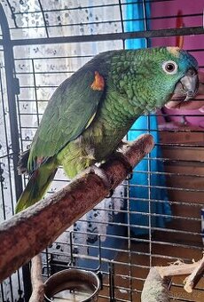 Prodám Amazoňana modročeleho SAMIČKU stáří 6,5 roku pevný kroužek s číslem + potvrzení o DNA