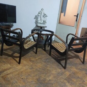 IKONICKA SEDACI SOUPRAVA Z 50 TYCH LET,stav výborný, stolek s původní skleněnou kulatou deskou,2 křesla stabilní, nerozviklaná,prodám jako komplet,pouze osobní převzetí, SMS,whatsapp,cena pevná,,PRODANO