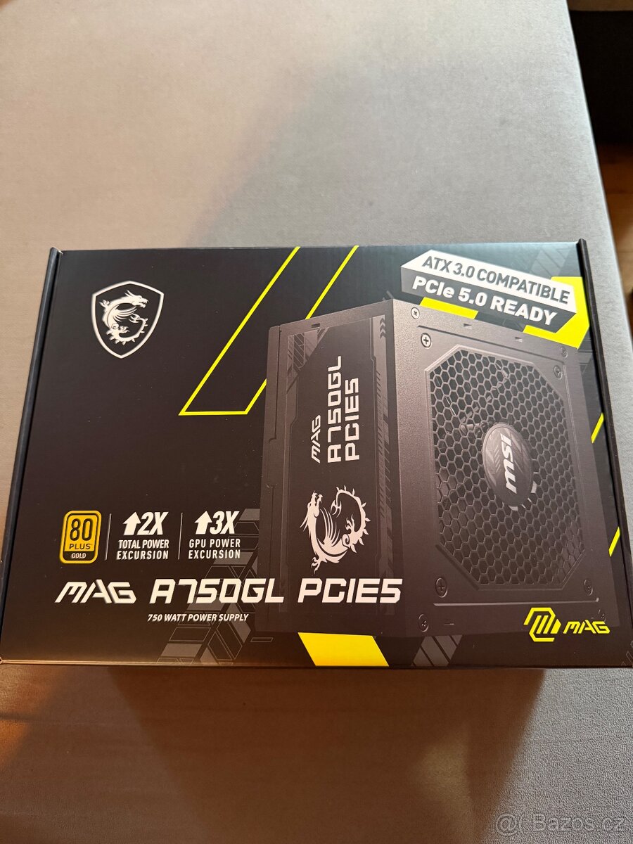 Prodám pc zdroj 750W - MSI MAG A750GL PCIE5, záruka do 1/27 u Alzy. Stavěl jsem nový pc, pořizoval jsem silnější zdroj. Kompletní balení.
