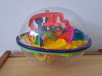 Velký oválný prostorový hlavolam, který vyzkouší vaše motorické schopnosti, postřeh a trpělivost. Cílem je dostat kuličku přes 208 různých překážek (spirály, propadliště, skluzavky...) do cíle. Rozměr asi 25x18cm. Běžné opotřebení. Malá promáčklinka v plastu, která nemá na hru vliv. Plast je neporušený. (Poštovné dle tarifu - Zásilkovna 89Kč, Balíkovna 75Kč.)