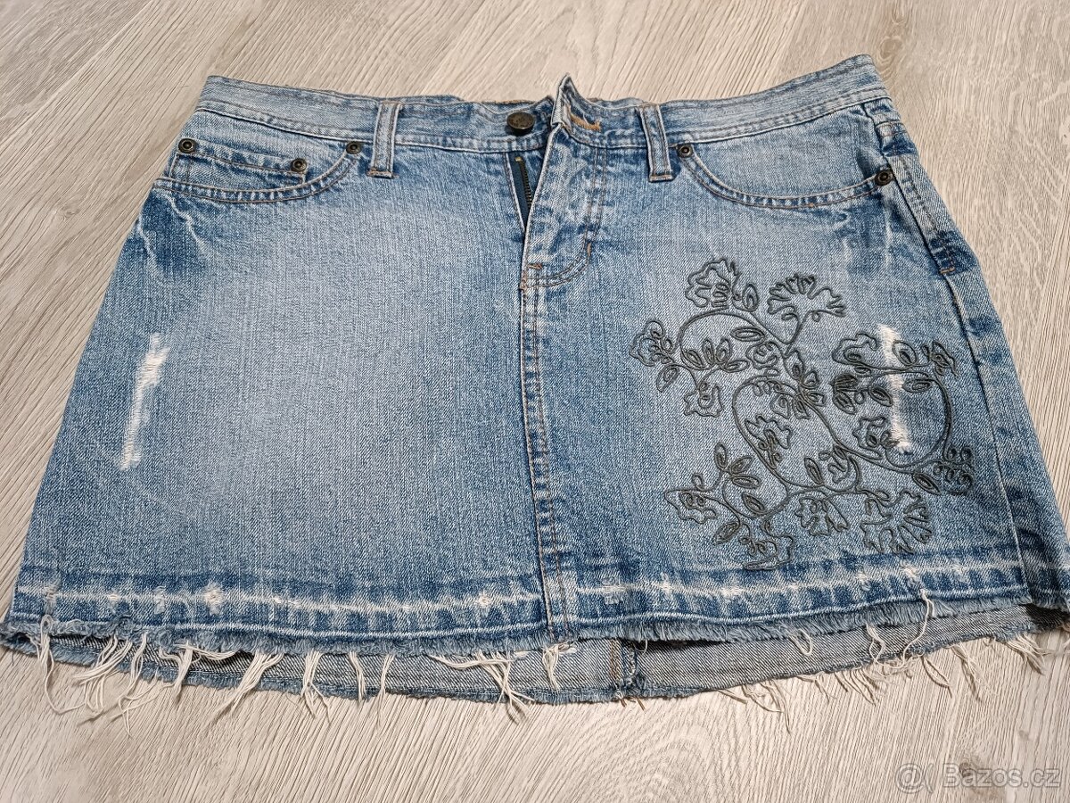 Mini dzinova modra sukne s ozdobnou nasivkou, nenosena, vel. 36, zn. Amisu