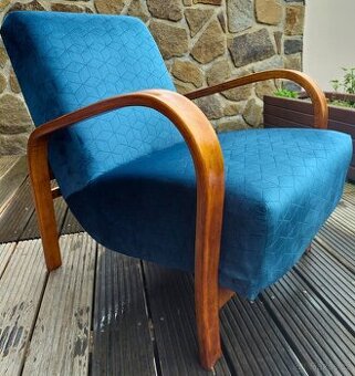 Nabízím k prodeji křeslo od architektů Kropáček a Koželka po kompletní renovaci čalounění i dřevěných částí. Čalouněno velmi příjemným odolným sametem odstín námořnická modř,dřevo ošetřené tvrdým voskem do odstínu světlý ořech