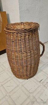 Prodám zachovalý a téměř nevyužívaný proutěný koš. Má 1 ucho a víko. Rozměry ve fotkách. Míra přes víko cca 32-33 cm, výška cca 52 cm, obvod v nejširším místě (bez započítání ucha) cca 113-114 cm.