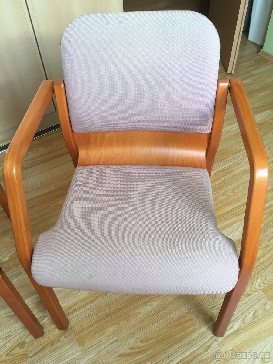 Prodám 3 dřevěné židle s čalouněním sedákem Čalounění má fleky-vhodné k vyčištění Cena za všechny tři
