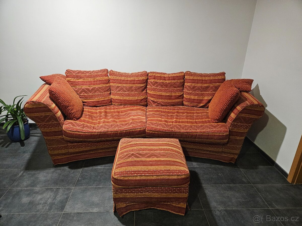 Prodám sedacku trosku do oblouku ve velmi dobrém stavu dlouhá 280cm šířka 85cm výška 80cm plus bombonek 60×60 výška 40cm
