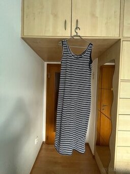 Dlouhé letní šaty - tmavě modrý proužek - vel.L