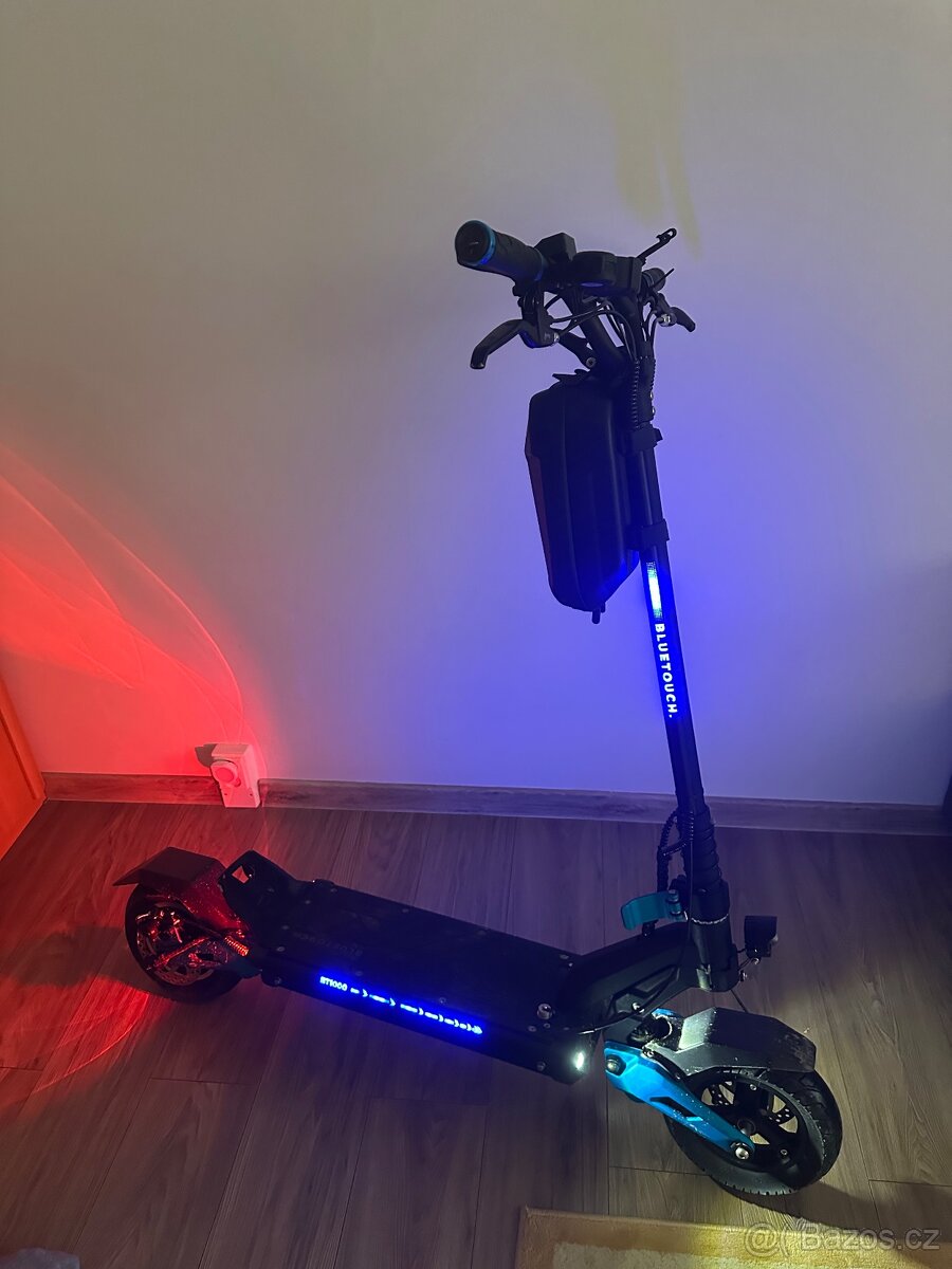 ⚡ Bluetouch BT1000 – 1000W / 45 km/h / 60 km 💰 17 500 Kč (rychlé jednání možná sleva) Prodám elektrickou koloběžku Bluetouch BT1000. Najeto pouze 253 km – stav jako nová, plně funkční. • Motor 1000 W • Rychlost až 45 km/h • Dojezd až 60 km (52V / 20,8 Ah) • 10” kola + odpružení vpředu i vzadu • Nosnost 150 kg • LCD, LED světla, NFC zámek V ceně: nabíječka, klíč. Původní cena 24 990 Kč. Prodávám z důvodu nevyužití. Pouze SMS. Osobní odběr.