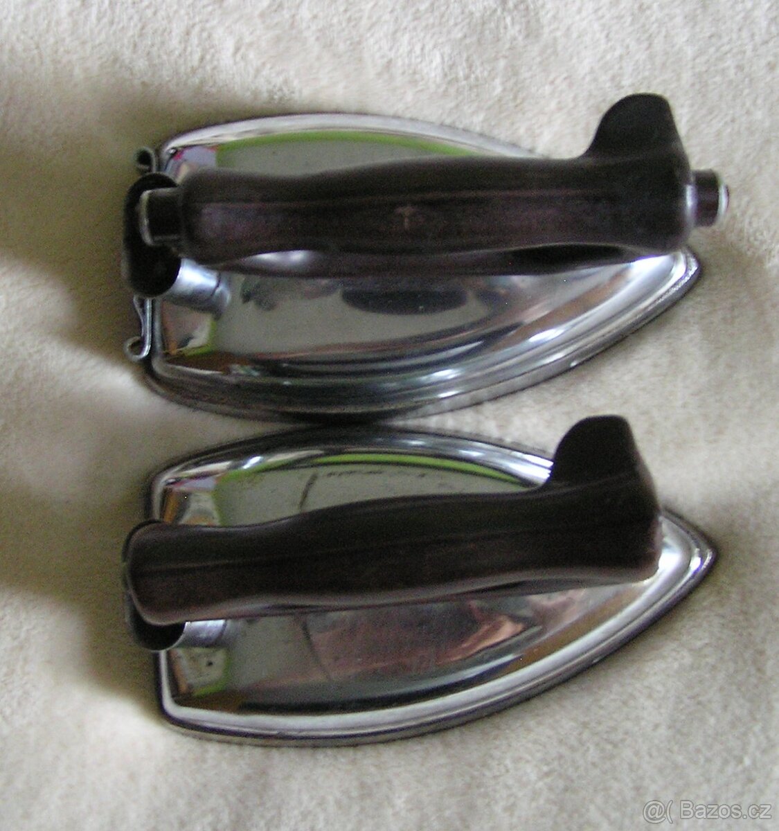 Cena: V textu. Prodám starožitné žehličky. Elektrické, bez kabelu. Jestli jsou funkční tak nemohlo být vyzkoušeno. Na jedné žehličce je kovový štítek, na druhé chybí. Kovové, s bakelitovým držadlem. Vyrobené v Československu. Typ 55N serie 062, 220V/450W Rozměry: cca 19 x 10,5 cm (délka x šířka), výška je kolem 12 cm. Cena 299,za jeden kus. V případě zájmu mě kontaktujte nejlépe emailem [email protected] , mohu zaslat i poštou přes balíkovnu.