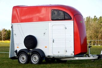 Prodám zánovní přepravník Humbaur Xanthos Aero s velkou sedlovnou (2x klíč). Velmi prostorný celohliníkový přívěs pro přepravu dvou koní s červenou laminátovou střechou, vybaven ALUBICOMP podlahou s 15-ti letou garancí (tloušťka 21 mm) a na stěnách s ochrannými okopovými deskami. Kvalitní KAMEROVÝ SYSTÉM Luda Farma (1 kamera uvnitř, druhá vzadu jako parkovací). Laminátová střecha je vakuově lisovaná o síle 5-8 mm, 150 cm vysoké ALU bočnice, 150 cm vysoká zadní rampa standardně s příčnými prahy. Síťovná roletka (dokonalé odvětrání přívěsu + průchod světla), automatické podpěrné kolečko, odnímatelné žlaby, síť na seno, rezervní kolo, velké vstupní dveře ke koním, výškově a šířkově polohovatelné prsní a zadní tyče. Celková váha 2200kg, provozní 804kg, nejvyšší rychlost 140km/hod., 1. registrace 2019. První majitel, kupován nový v ČR. Velmi málo používaný, ještě voní novotou, garážovaný. Původní cena s výbavou cca 340.000Kč koňka, koňobus, vlek, vozík, přívěs, přepravák, hengr, henger,