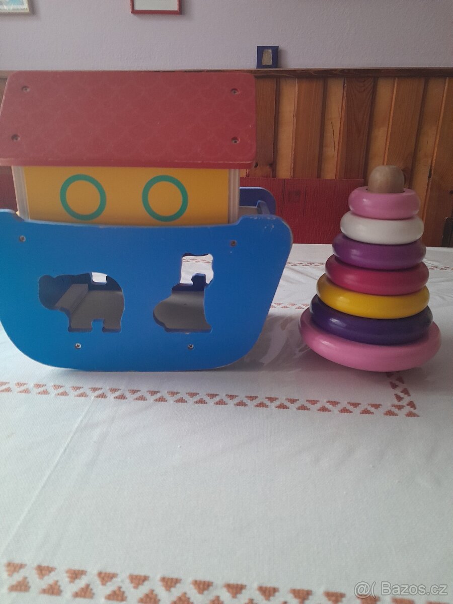 Prodám 2 dřevěné a 1 plastovou vkládací hračku. Pěkné, nepoškozené a málo používané. Levně.