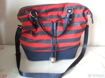 Kabelka značka Pabia. Výška 35 cm, šířka 45 cm a dno 14x28 cm. Na zip i popruh. Červeno modrá. Jako nová. Nemá poškození.