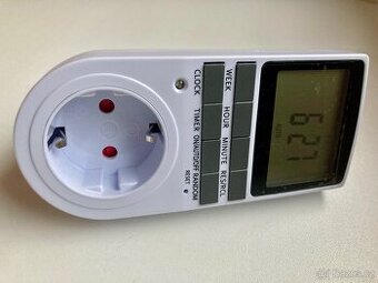 • Prodám digitální časový spínač do zásuvky pro napětí 230 V / 50 Hz, max. zátěž 16 A / 3680 W, s týdenním programováním po minutě. • Zástrčka i zásuvka jsou v německém systému Schuko – bez středového ochranného kolíku, tedy vhodné hlavně pro německé zásuvky nebo české zásuvky typu F. • Přehledný LCD displej, vnitřní záložní baterie, běžné provozní teploty -10 až +40 °C.