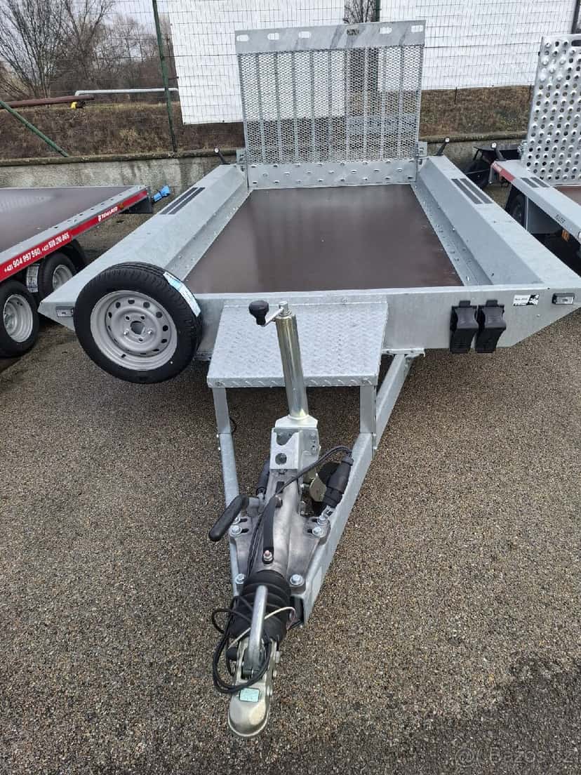 Přepravník strojů BUILDER 3 4018/3 S 3.5T. Přives pro přepravu stavebních strojů a veľmi těžkých materiálů.Svařovaný nosný rám z uzavřených ocelových profilů. Podpěra ližíce a podpěrné kolo s automatickým sklápěnim.
