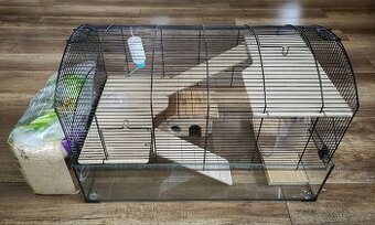 Prodám 2 roky starou, po jednom křečkovi použitou klec v pěkném stavu s příslušenstvím na foto. Velikost 70x40cm, výška 45cm.