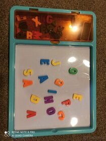 Prodám tabuli pro děti - je oboustranná. Jedna strana je magnetická, druhá černá křídová. Ve vrchní části trochu prohnutá - viz. foto.
