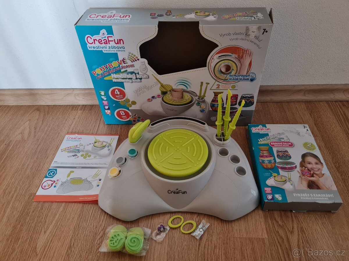 Prodám dětský hrnčířský kruh, plně funkční, použitý 2x. K němu přidám nové balení hrnčířské hlíny.