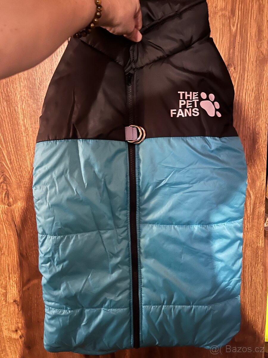 Prodám novou, nenošenou bundu pro psa ve vel. 5xl, v tyrkysové barvě, vhodná na dobrmana, dalmatina, labradora apod. Moji bullí psi mají velký obvod hrudníku, ale jsou krátcí, takže jsme zvolili jiný střih. Je škoda, aby tuhle bundu nevyužil jiný pes, kterému padne. Měla jsem dva kusy, jednu jsem darovala synovi pro fenku, takže má bundu vyzkoušenou a je velmi spokojený. Dokonce se mu v ní fenka nešťastně propadla pod led v řece, po vytažení jsme chtěli spěchat domů, ať nepromrzne, ale ona chtěla pokračovat v procházce, i v mraze bunda uschla a fenka pod ní byla teplá, spokojená a neprochladla, myslím, že ji ta bunda zachránila před zdravotními problémy. Poslední foto s labradorem je ilustrační pro představu střihu.