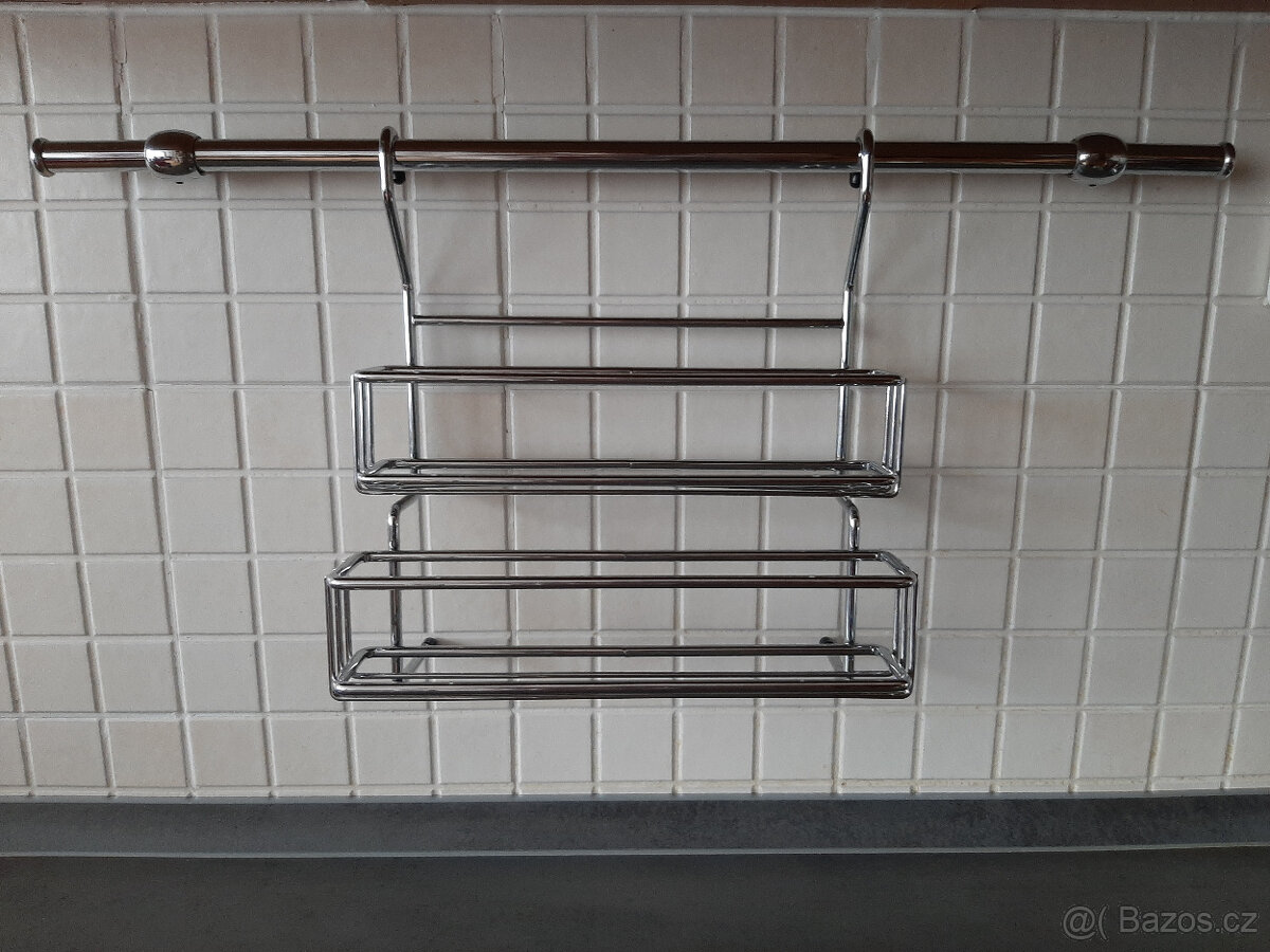 Cena: V textu. Prodám kuchyňský drátěný systém - chrom lesklý (možno i jednotlivě) madlo vč. zátek, úchytek délka 60cm 100,-kč madlo vč. zátek, úchytek délka 90cm 110,-kč Držák rolí třístupňový na papírové utěrky, folie, alobal Rozměry : š32xh18xv32 350,-kč Kořenková polička dvouřadá Rozměry : š28xh14xv30 250,-kč Háček 6ks 10kč/1ks 60,-kč