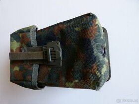 Zánovní originální sumka na dva zásobníky do německé útočné pušky G3 v potisku Flecktarn. Výrobce Schleswiger Tauwerke, 1997. Může posloužit na opasku i na doklady nebo peníze.