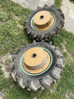 Prodám kola s pneumatikami 5.00 - 12. Pneu úplně nové. Součástí kol je i závaží a poloosy pro motokultivátor. Cena 10 000,-