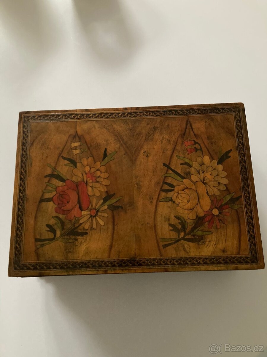 Cena: Nabídněte. Prodám starou šperkovnici, dědictví po prarodičích, 32x23x12, cenu nabídněte, tel. 724 418 403
