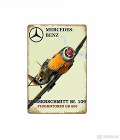 plechová cedule: Mercedes-Benz - reklama na letecký motor pro Messerschmitt Bf 109, Bf 110 Německý válečný propagandistický plakát ve formě plechové cedule. Daimler-Benz DB 605; motor pro stíhací letoun Messerschmitt Bf 109 a Bf 110 + dopravné od 80Kč při platbě předem. Velikost: 30cm x 20cm Materiál: kov Další plechové cedule viz. další mé inzeráty. (luftwaffe, wehrmacht, wwii, ww2, německá armáda, propaganda, válečná reklama)