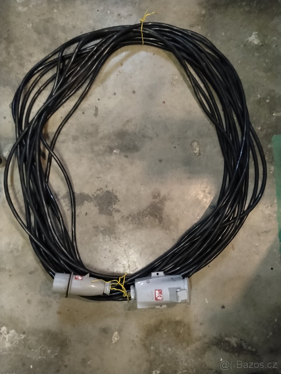 Nabízím prodlužovací kabel s koncovkami (čtyřkolik) na 380V v délce 33 metrů. Délku i cenu lze upravit podle požadavku.