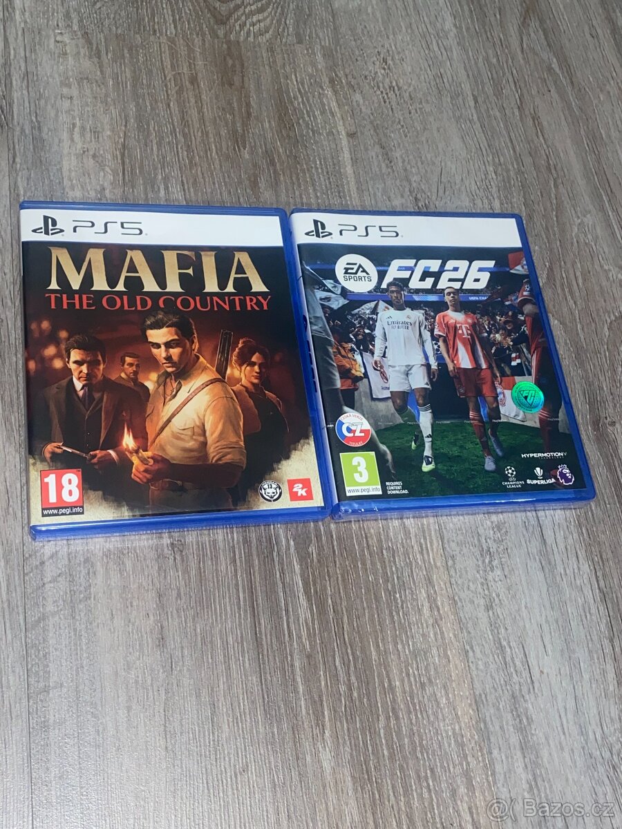 Prodám nové hry na PS5: 🎮 FC 26 – úplně nová, originálně zabalená 🎮 Mafia The Old Country – také nová, nehraná Obě hry jsou ve 100% stavu, vhodné i jako dárek. 💰 Při rychlé domluvě je možná sleva 📍 Osobní předání Havířov nebo zaslání po domluvě. 📩 V případě zájmu mě neváhejte kontaktovat.