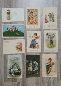 Staré pohledy Děti a Květiny