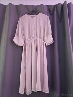 Letní ŠatyLetní Šaty se ztahujícím pasem zapínáním ve předu a krásným rešením rukávů. Velikost XS H&M původní cena kolem 300 Kč