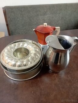 Prodám tyto různé potřeby do kuchyně.Formy na pečení a konvice.Stav viz foto Cena za vše dohromady je 300 Kč