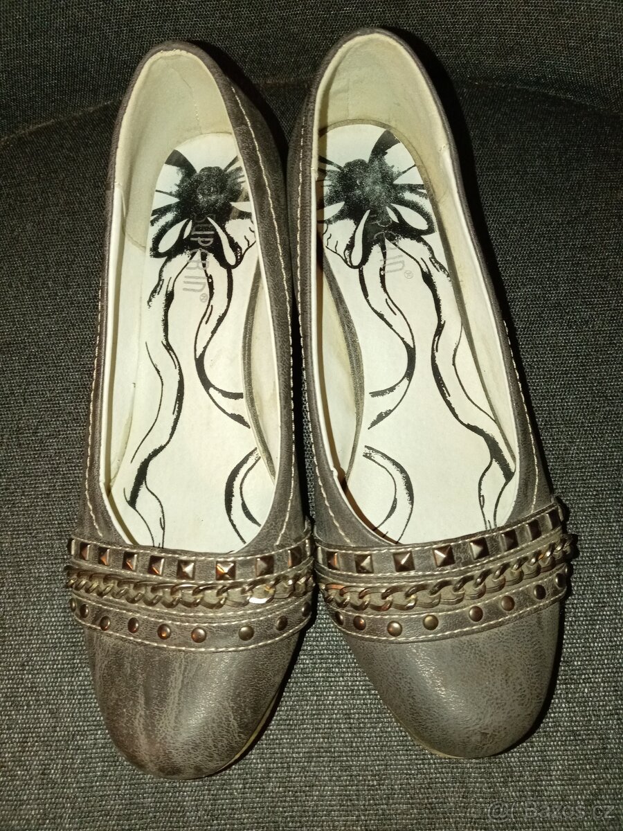 Šedé s ozdobným kováním Krátce nošené Délka stélky 24 cm