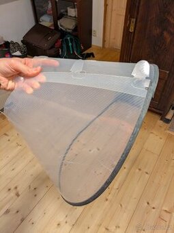 Nabízím ochranný límec pro psa, vhodný po operacích nebo při poranění, aby si pes nelízal nebo nekousal rány. Límec je nastavitelný, snadno se nasazuje i sundává a je z lehce omyvatelného plastu, takže se dobře udržuje v čistotě. Velikost L-XL. Obvod krku cca 47-57cm, délka 30 cm). Zapínání na 4 plastové spony. Vhodné pro střední až velká plemena psů (např. labrador, zlatý retrívr, border kolie, německý ovčák, boxer, bernský salašnický pes) Důvod prodeje - pes ho už nepotřebuje. Osobní převzetí Praha/Ostrava nebo zásilkovna.
