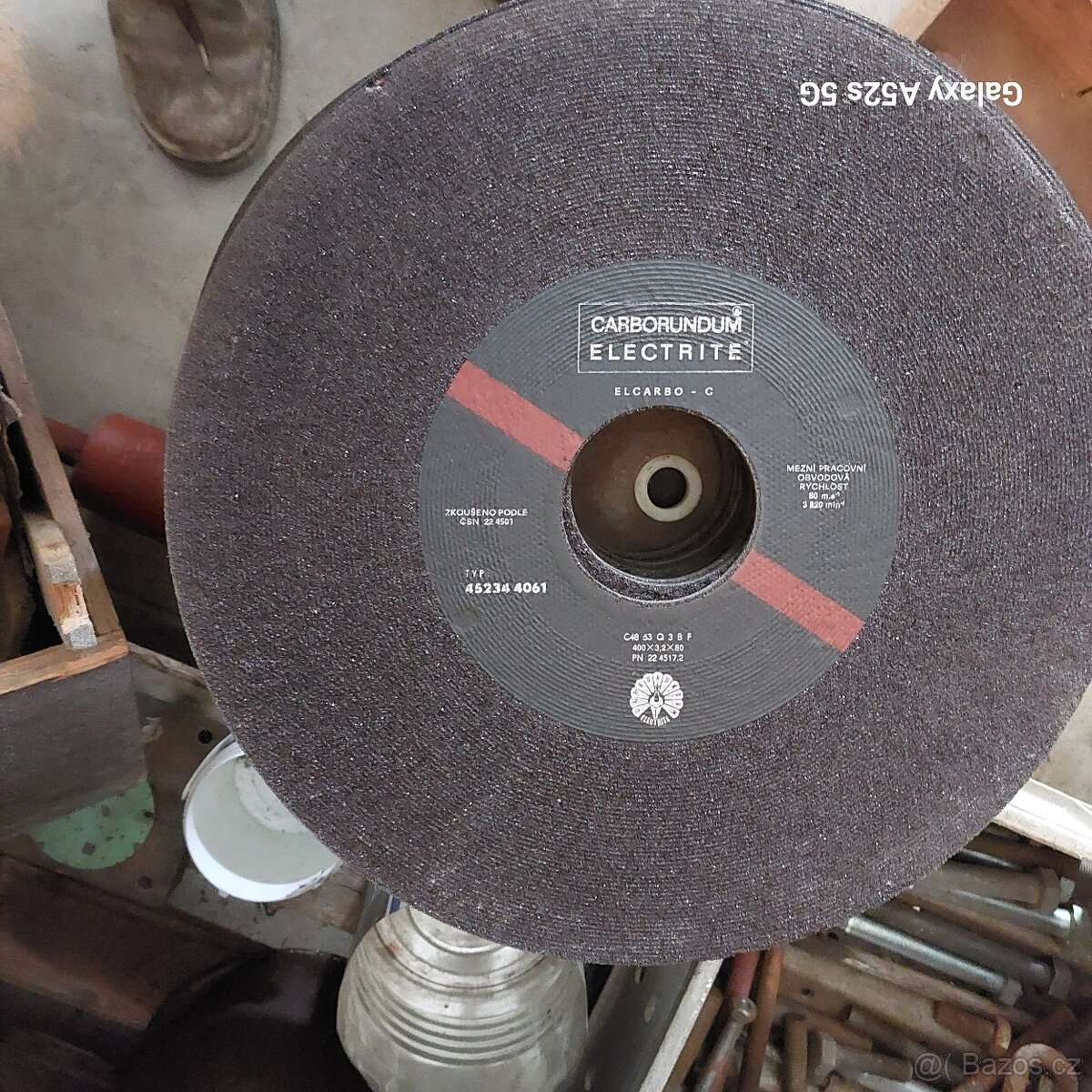 Prodám tyto nové nepoužité kotouče CARBORUNDUM průměr 400 mm, síla 3,2 mm, s otvorem 80 mm. Mám jich 10 kusů