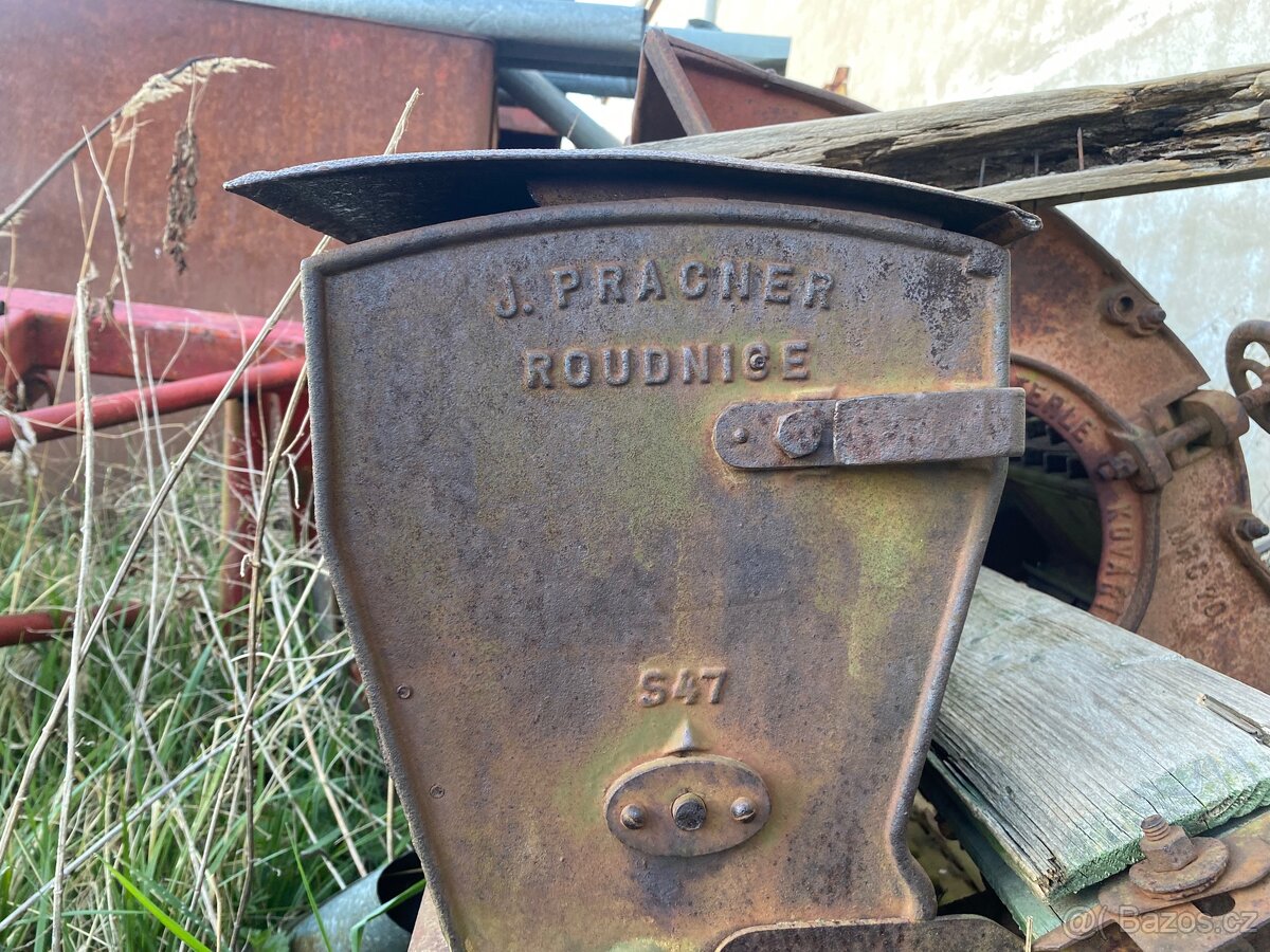 Prodám starý secí stroj za koně, možnost tahat i za traktorem. Vhodný na renovaci, kola jsou již rozpadlá.